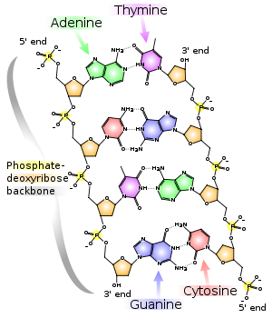 Fig. 1. Esquema de um troço da molécula de ADN. A Adenina e a