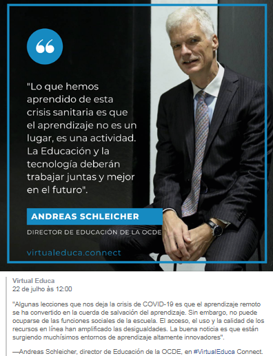 Sim, confirmo veracidade da fotomensagem. Faz parte do "Encontro Internacional Educa Connect", realizado nos dias 21, 22 e 23 de julho de 2020, no qual participei. Deixo o link do vídeo completo da intervenção de Andreas Schleicher no supramencionado Encontro: https://youtu.be/yVQjBRphEUg
