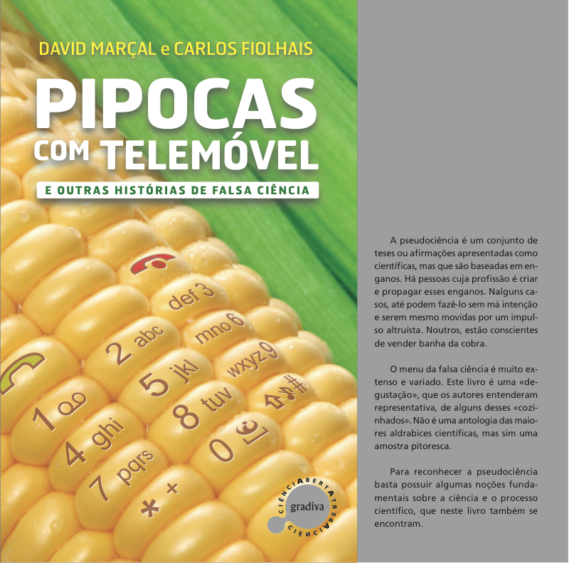 Um bom exemplo de uma tentativa de enganar os outros é dado pelo vídeo da produção de pipocas com a ajuda de vários telemóveis, que alguns engraçados colocaram na Internet, talvez para se divertirem, mas que espalharam o pânico sobre hipotéticos perigos daqueles aparelhos. Mas muitos outros exemplos se encontram ao longo deste livro. Os autores, o primeiro bioquímico e o segundo físico, depois de, nesta mesma editora, terem contado, em Darwin aos Tiros algumas histórias de ciência, contam neste Pipocas com telemóvel, algumas histórias de falsa ciência. Se as histórias do livro anterior eram divertidas (foi, pelo menos o que disseram a maioria dos leitores que contactou os autores, não sendo, por isso, a amostra neutra), as histórias do presente livro são divertidíssimas. Se a ciência pode ser divertida, a pseudociência então é garantidamente muito divertida...