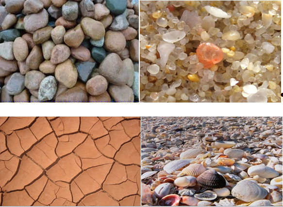 Geradas na interface da litosfera com as atmosfera, hidrosfera e biosfera, as rochas sedimentares são essencialmente constituídas por um, dois ou três dos seguintes componentes fundamentais:
